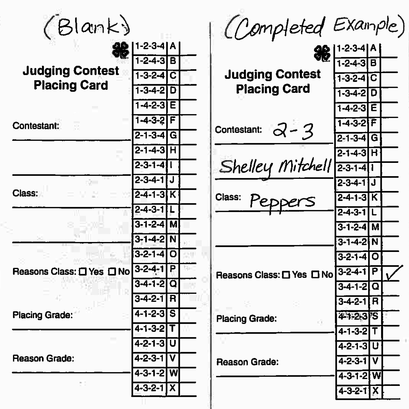 - 4-H Judging Placement Card Example